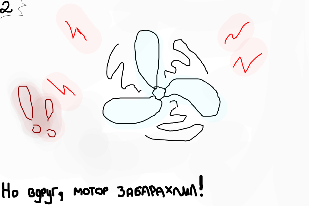 2. Но вдруг, мотор забарахлил и лопасти остановились!