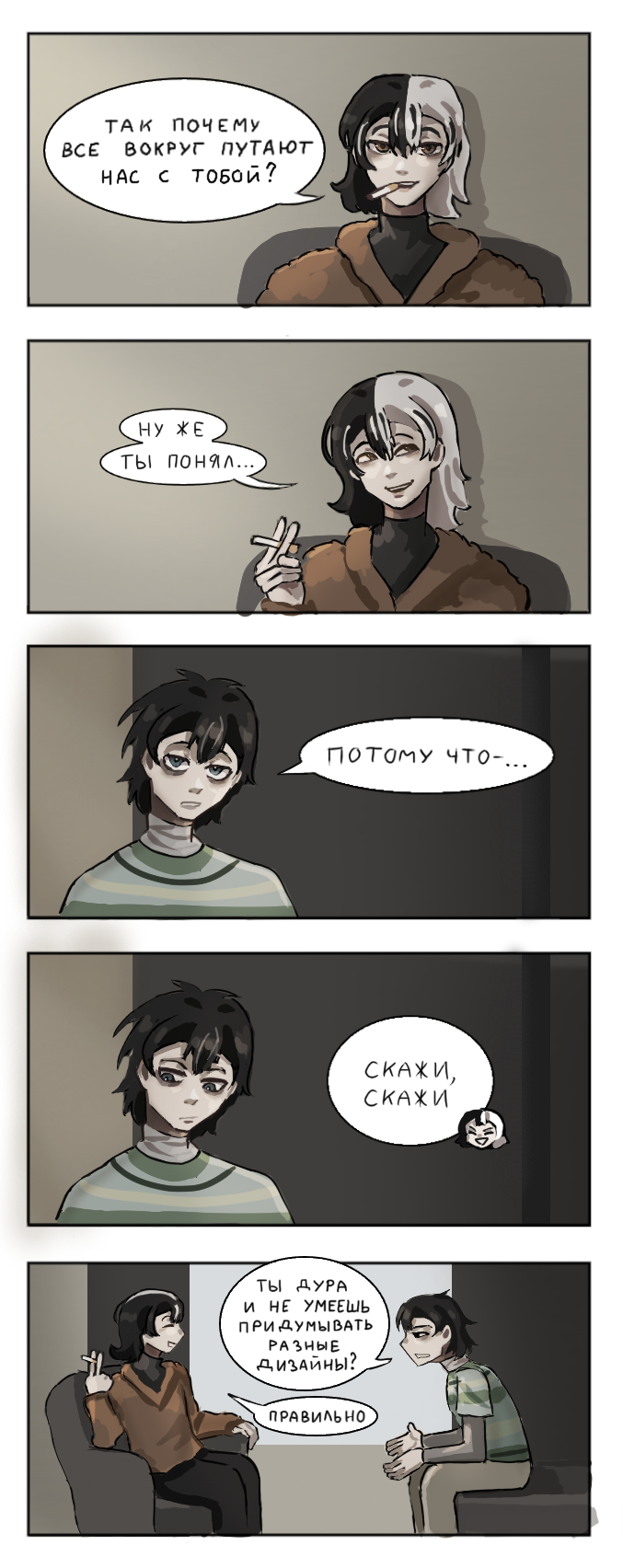 Самой Псухе (мне), если што, абсолютно всё равно путаете ли вы её персов или нет, потому шо она сама их путает, но ей эта ситуэйшон показалась забавни