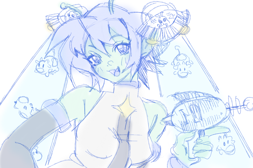Miyum (SirTreeko), дап, вообще ходил какой то тренд, но это не точно и вот там была такая мику с тарелками хвостиками и типо инопланетная вооот