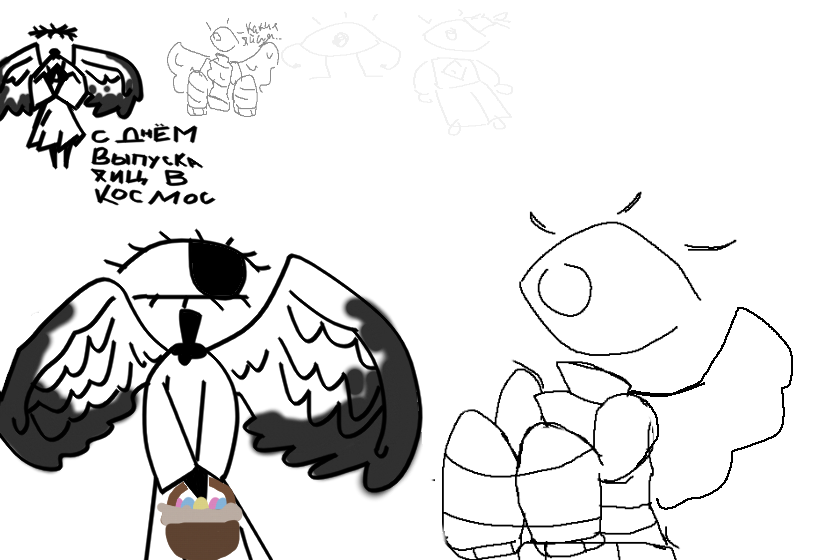 с прошедшим днём выпуска яиц гагарина в космос! вас паздравляют дженни и энджел
