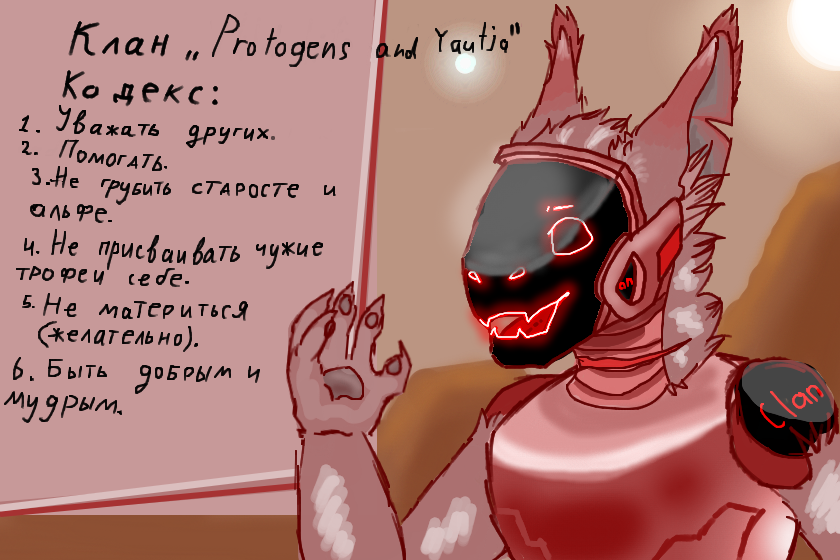 Я от вас ничего такого не требую. Разве что написать у ника название клана. Будьте достойны звания старосты. Будет 2 человека, которые будут избераться на неделю. Если что я альфа.