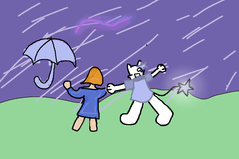 Аа ребята мы бежим зонтик улетел. А мы тут хз что ну короче мы бежим домой тут ураган ребята помогите нам!