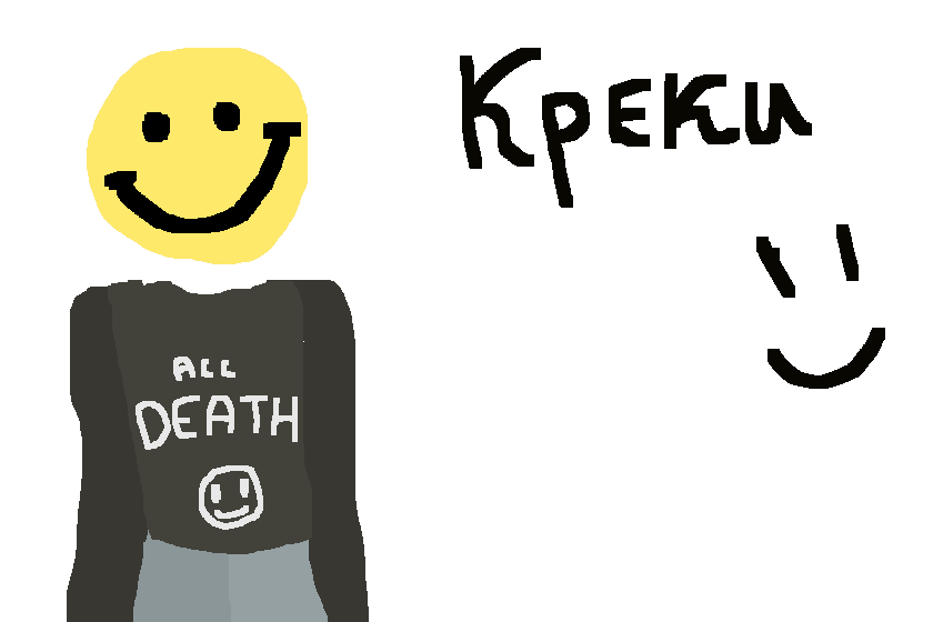 это креки, он родом из дримкора,одет в черный лонгслив и светло-голубо-серые ждинсы. Это типо 2д смайлик. Это девочка, любит кровь, газировку, писать смайлами.