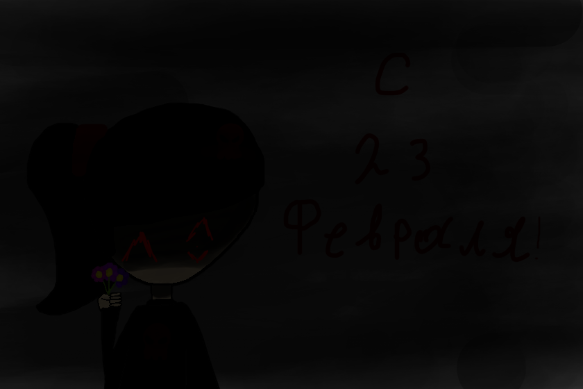 katie, Если ничего не видишь, то тут нарисован мой оригинальный персонаж и держит в руках не чётное количество цветов, а рядом с моим оригинальным персонажем написано "С 23 февраля!".