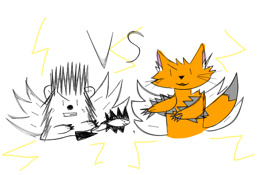 ёжичка (мой персонаж) против рыжика (тоже мой придуманный персонаж)